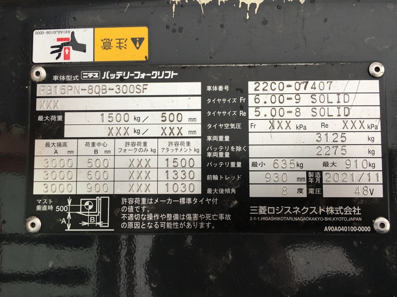 (NICHIYU) FB15PN-80B-22C0-07407Used Forklift