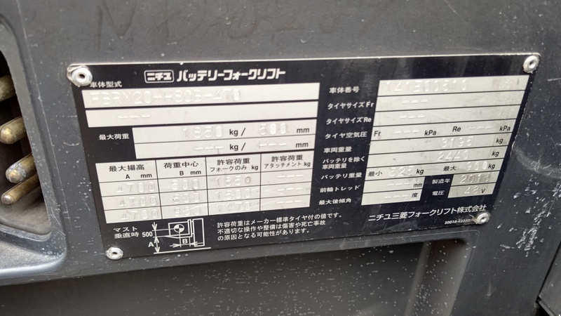 (NICHIYU) FBRM20-H80B-141E00510Used Forklift