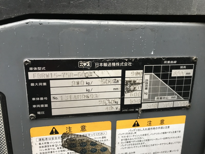 (NICHIYU) FBRW15-75B-131AH0693Used Forklift