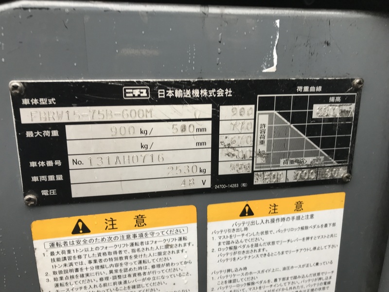 (NICHIYU) FBRW15-75B-131AH0716Used Forklift