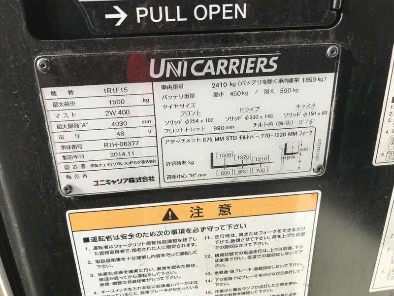 (NISSAN) 1R1F15(FBR15)-06377Used Forklift