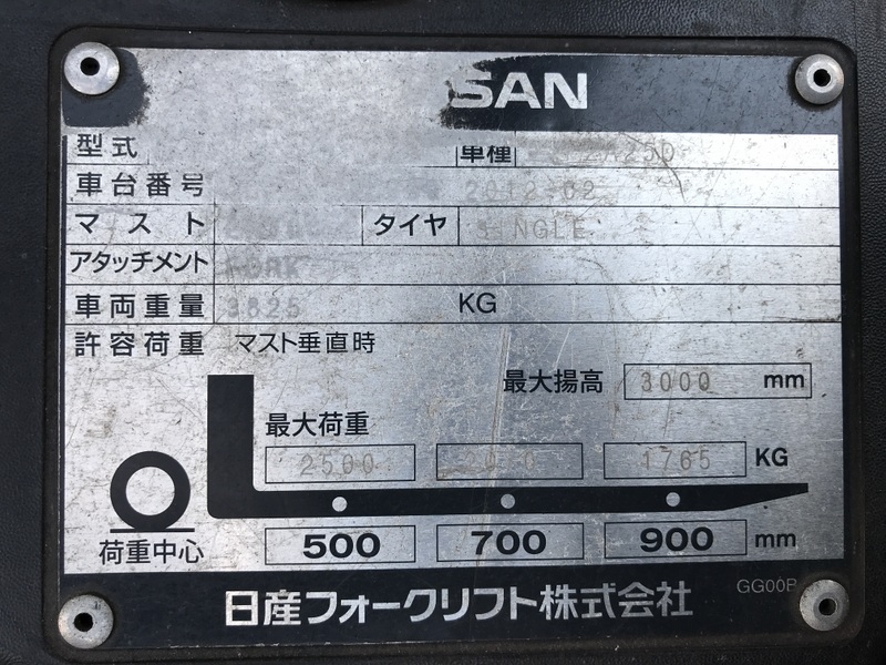 ※It is subject to reduced tons by the presence or absence or the height of the mast of the attachment.