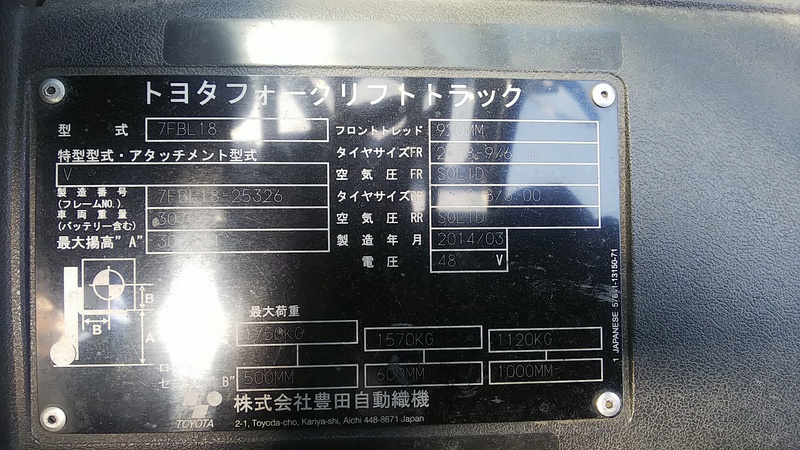 | Model | 7FBL18 | Year | 2014 |