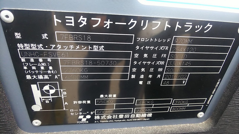(TOYOTA) 7FBRS18-50730Used Forklift