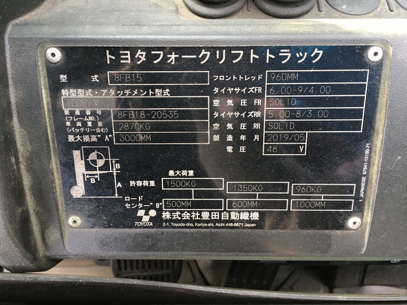 | Model | 8FB15 | Year | 2019 |