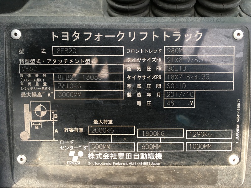 | Model | 8FB20 | Year | 2017 |
