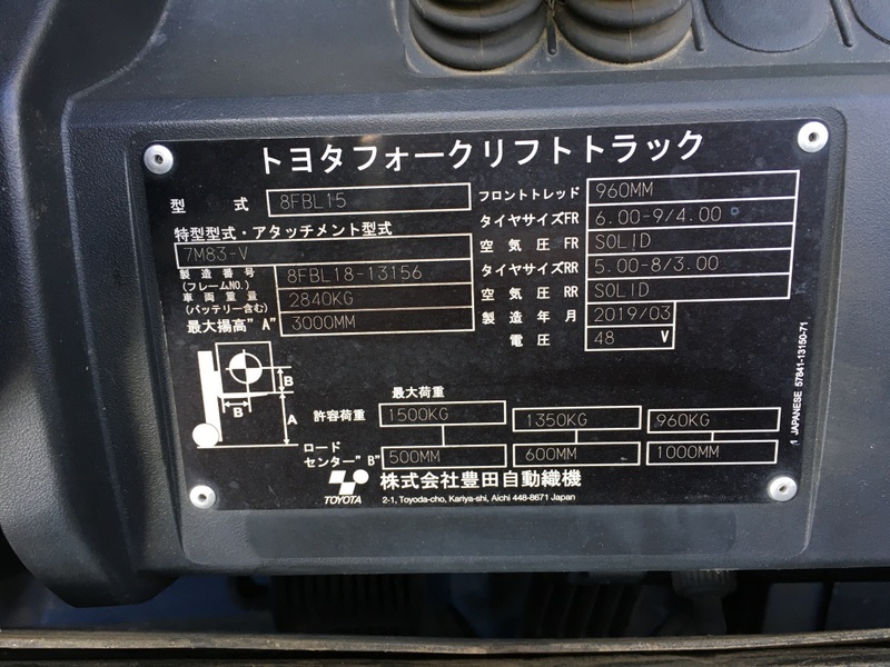 | Model | 8FBL15 | Year | 2019 |
