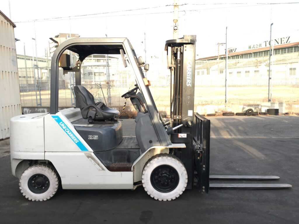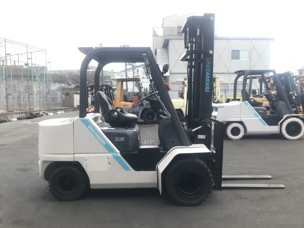 (現状格安販売) ユニキャリア ディーゼル車 2.5ton 4.8mマスト FD25T5 3段フルフルー サイドシフト フォークリフト