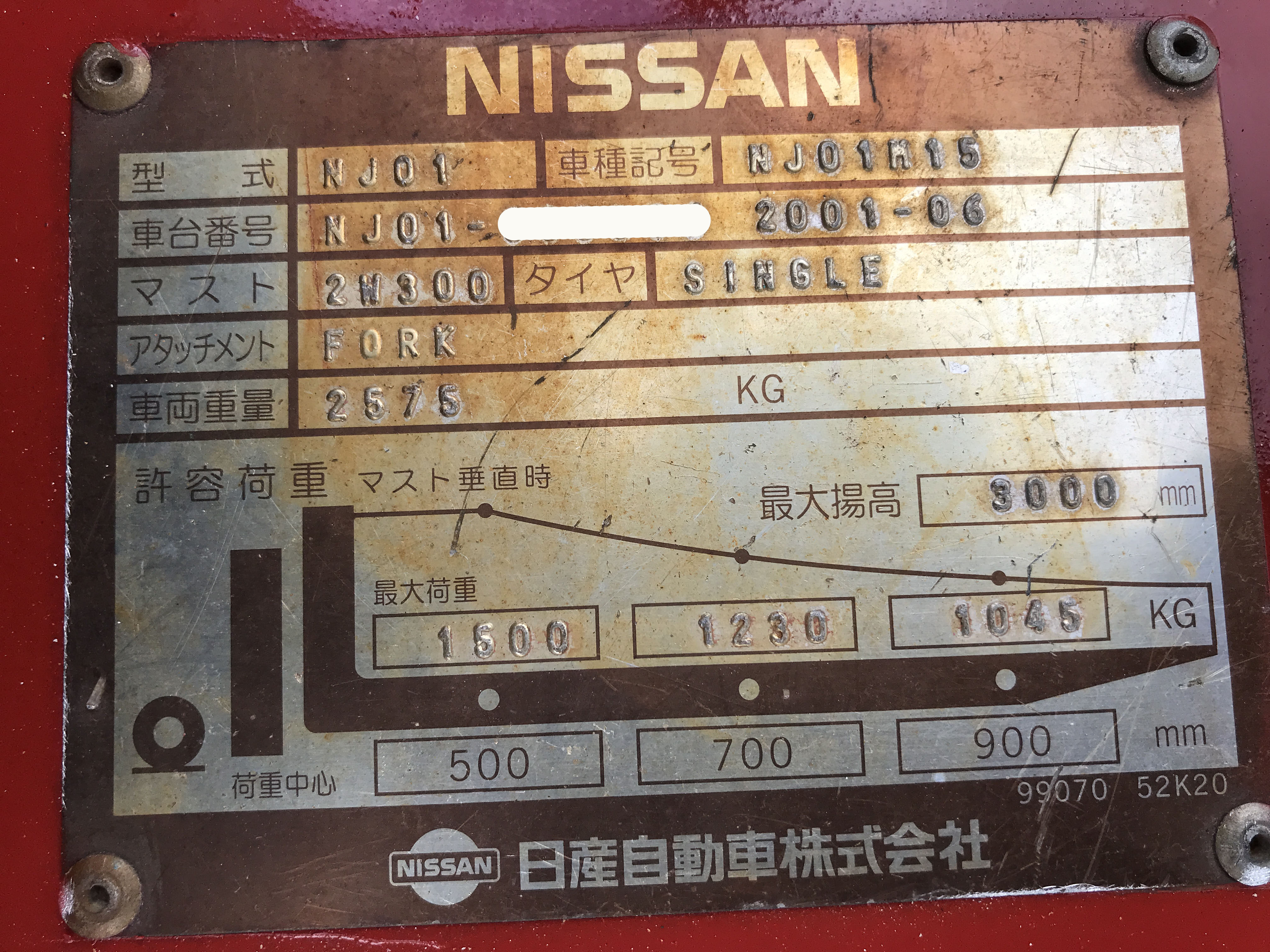 | アワーメーター | 4,946H | 重量(自重) | 2,575kg |