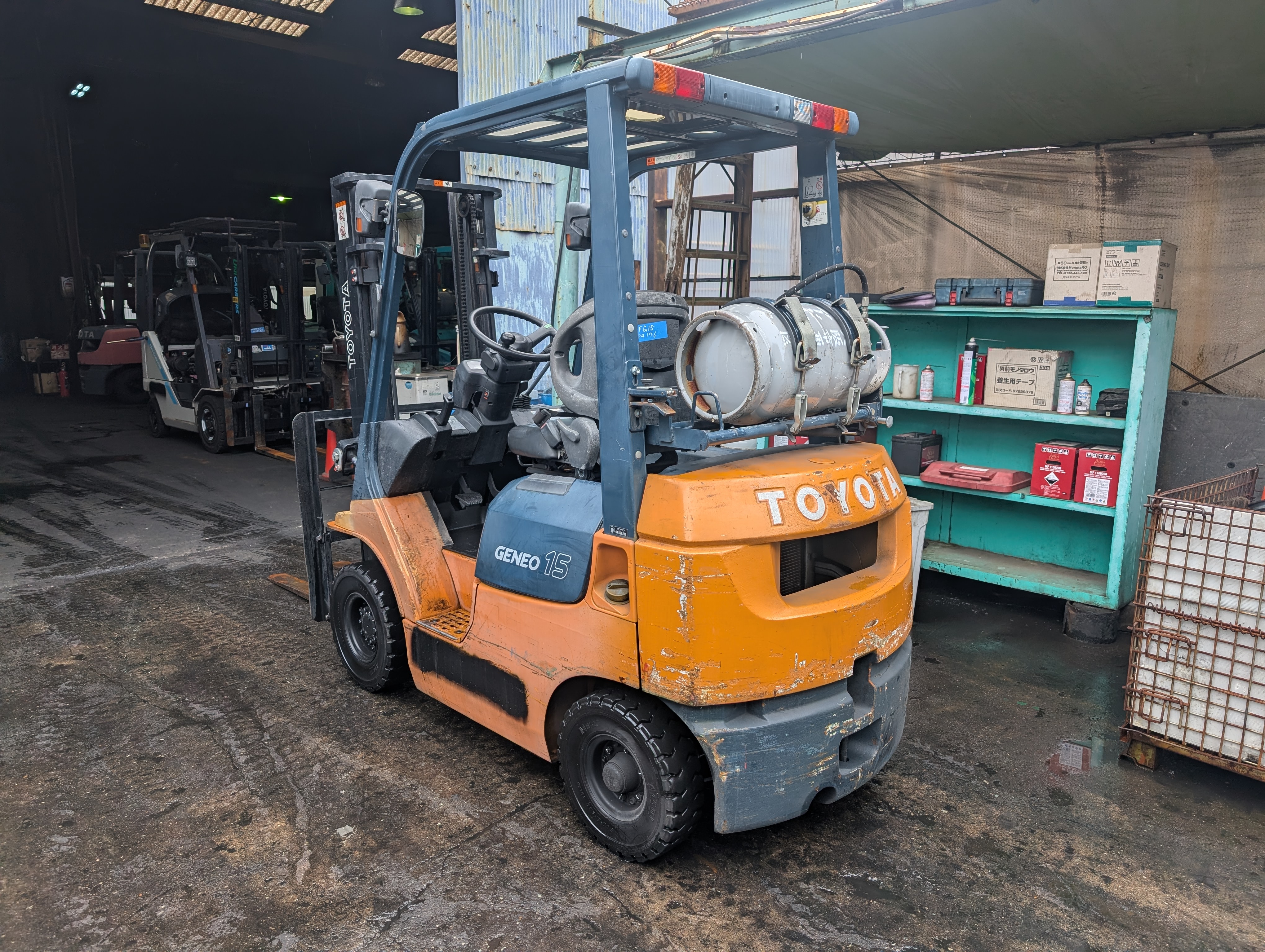 | その他(スタッフPR) | ミッドシール漏れ、湿式クラッチ蓋滲み、マフラータイコ穴あり。LP ガス始動可能。前後進荷役動作については、動画をご参照下さい。簡易的な動作チェックは行っておりますが、弊社で整備はしておりませんので、ご購入をご検討の方は現車確認をお願いいたします。 ※現車確認は、必ず事前にご連絡頂きますようお願い申し上げます。 ご連絡なくお越しになられた場合、他の業務の状況により、すぐにご対応できない場合がございます。 | ||