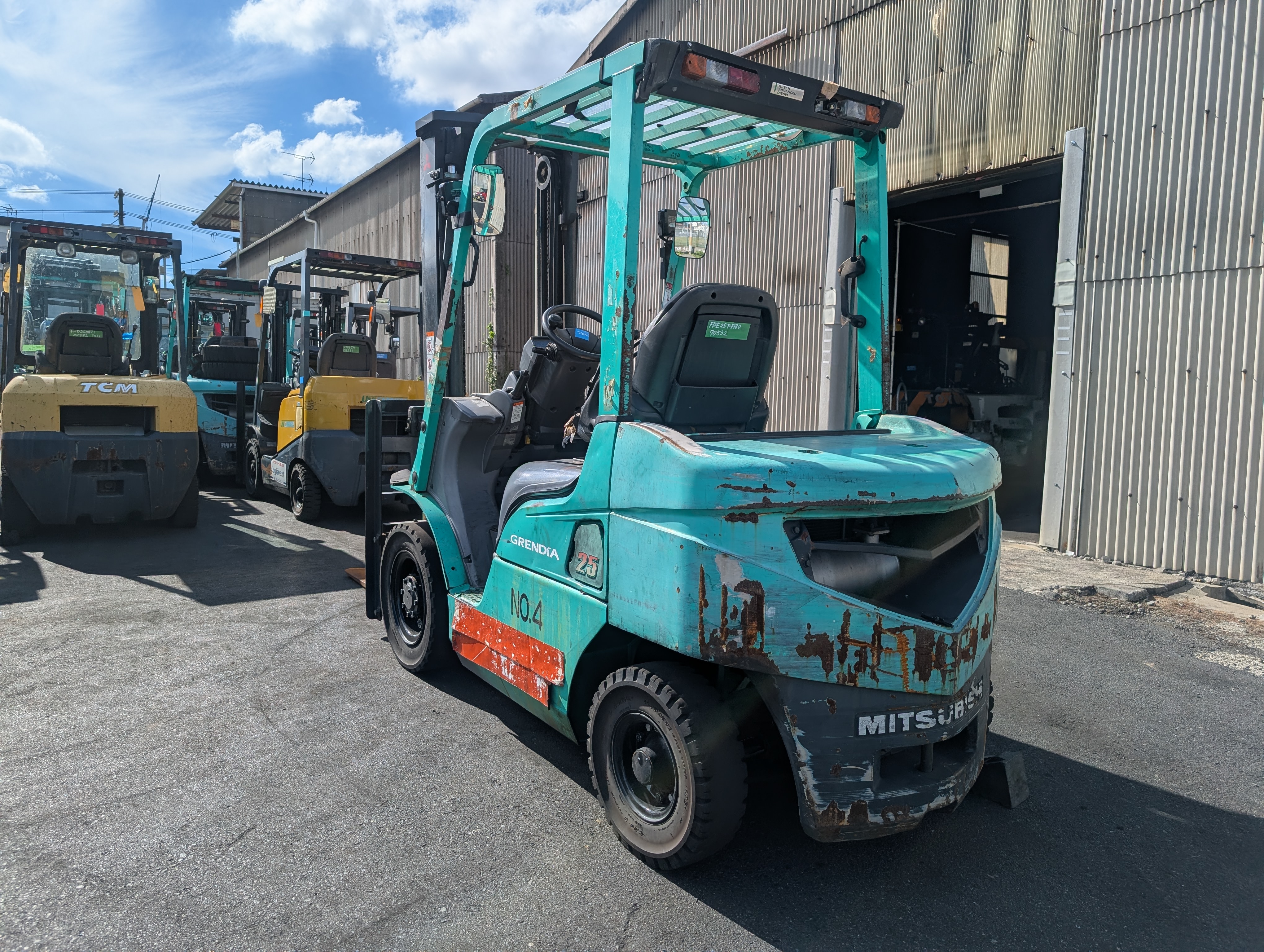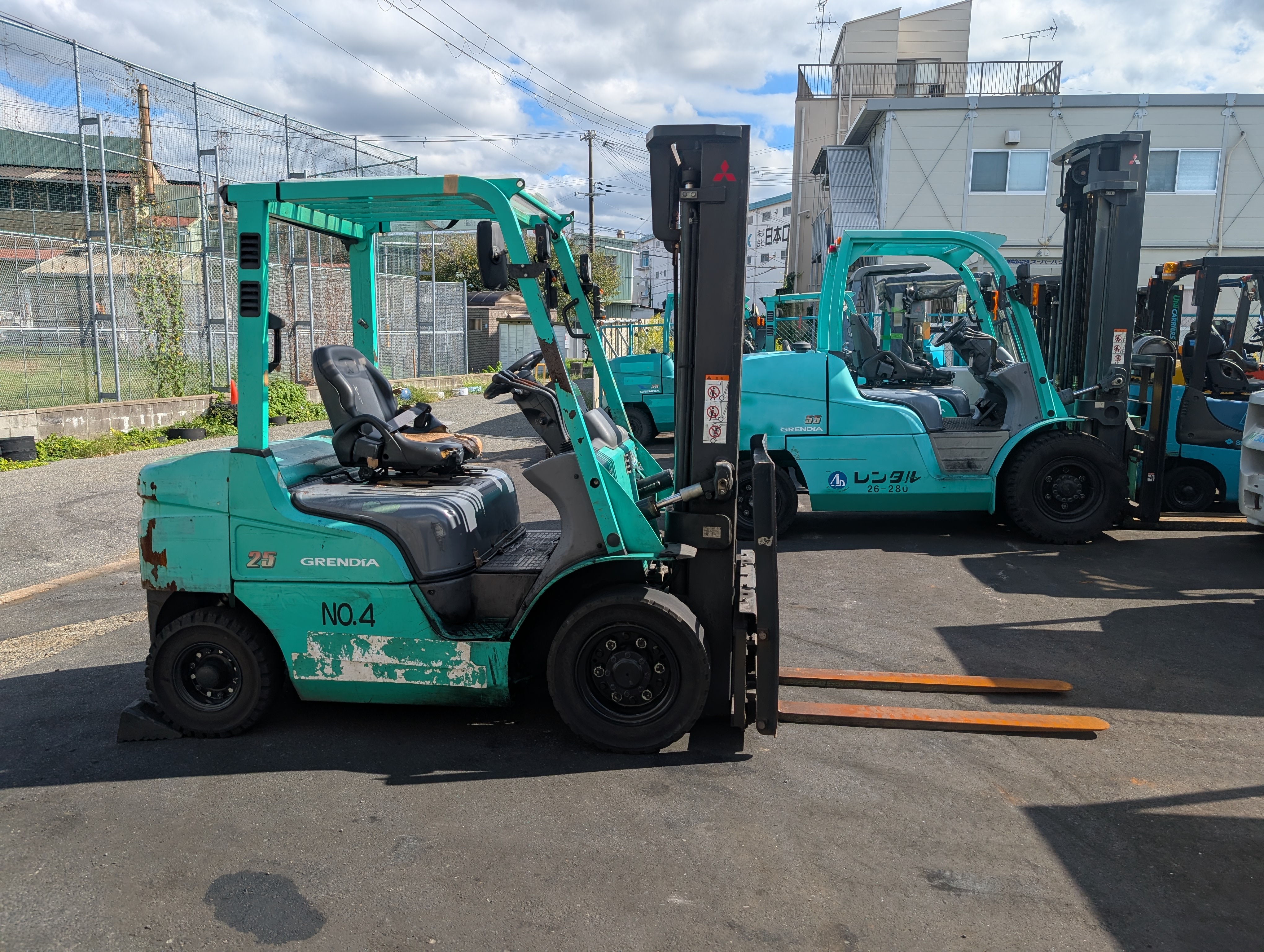 | その他(スタッフPR) | 簡易的な動作チェックは行っておりますが、弊社で整備はしておりませんので、ご購入をご検討の方は現車確認をお願いいたします。 ※現車確認は、必ず事前にご連絡頂きますようお願い申し上げます。 ご連絡なくお越しになられた場合、他の業務の状況により、すぐにご対応できない場合がございます。 エラーD-02(アクセルセンサー?異常),F-40(ステアリング警告)、右テール一部欠品、トルコン下回りにじみ、フォーク摩耗。 | ||
