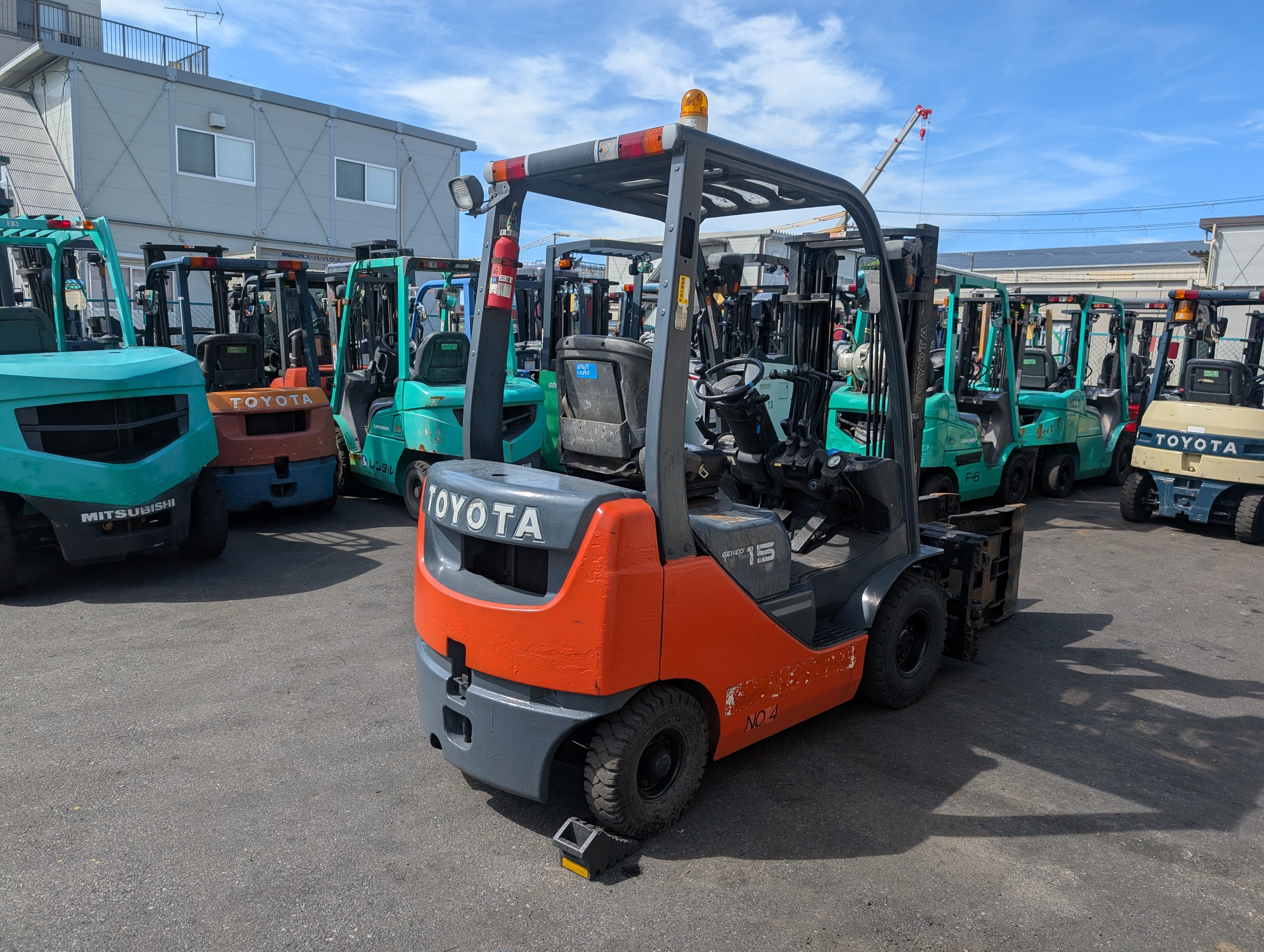 (現状格安販売) トヨタ ガソリン車 1.5ton 3mマスト 8FG15 回転ドラムクランプ フォークリフトUsed Forklift