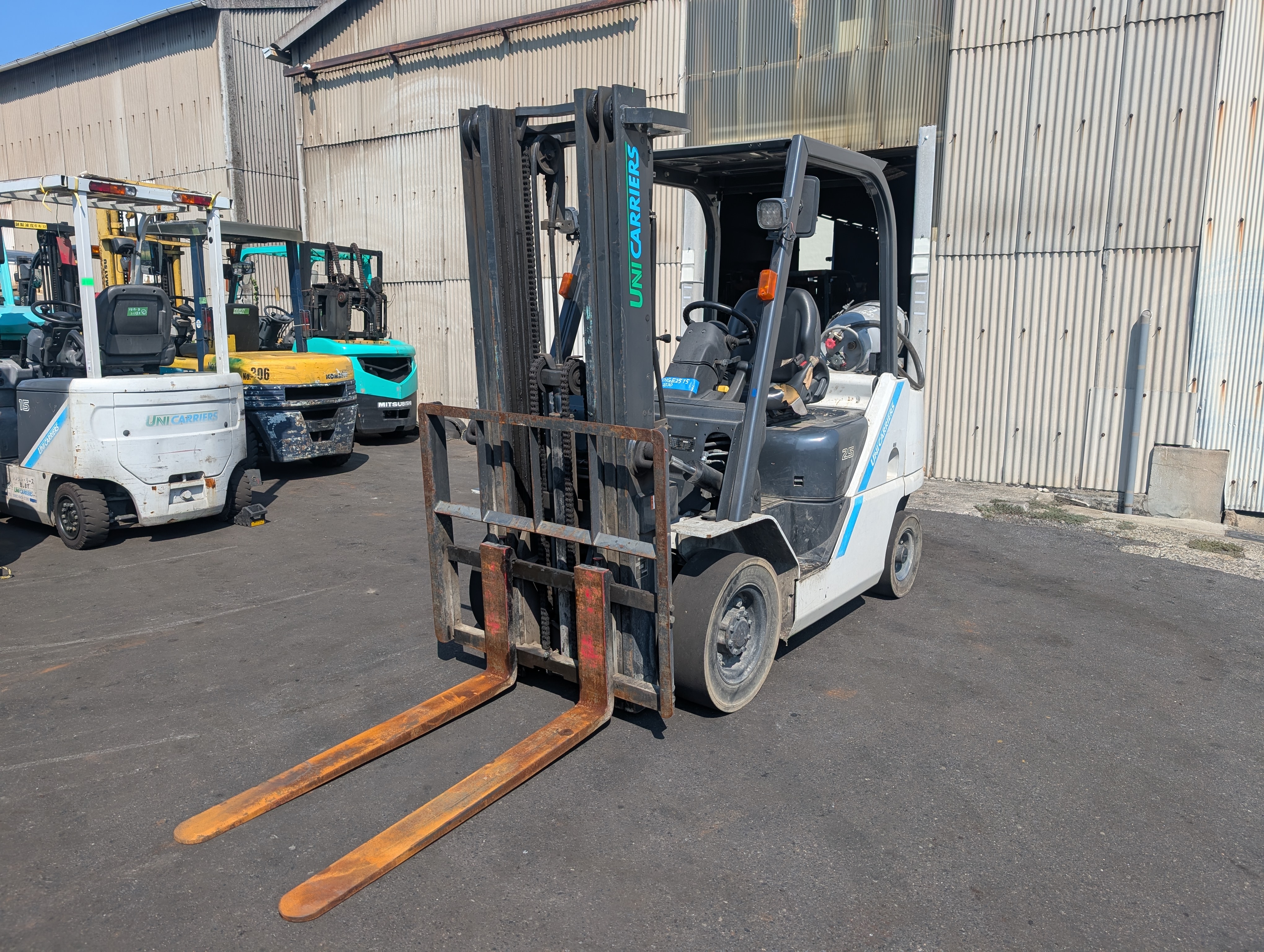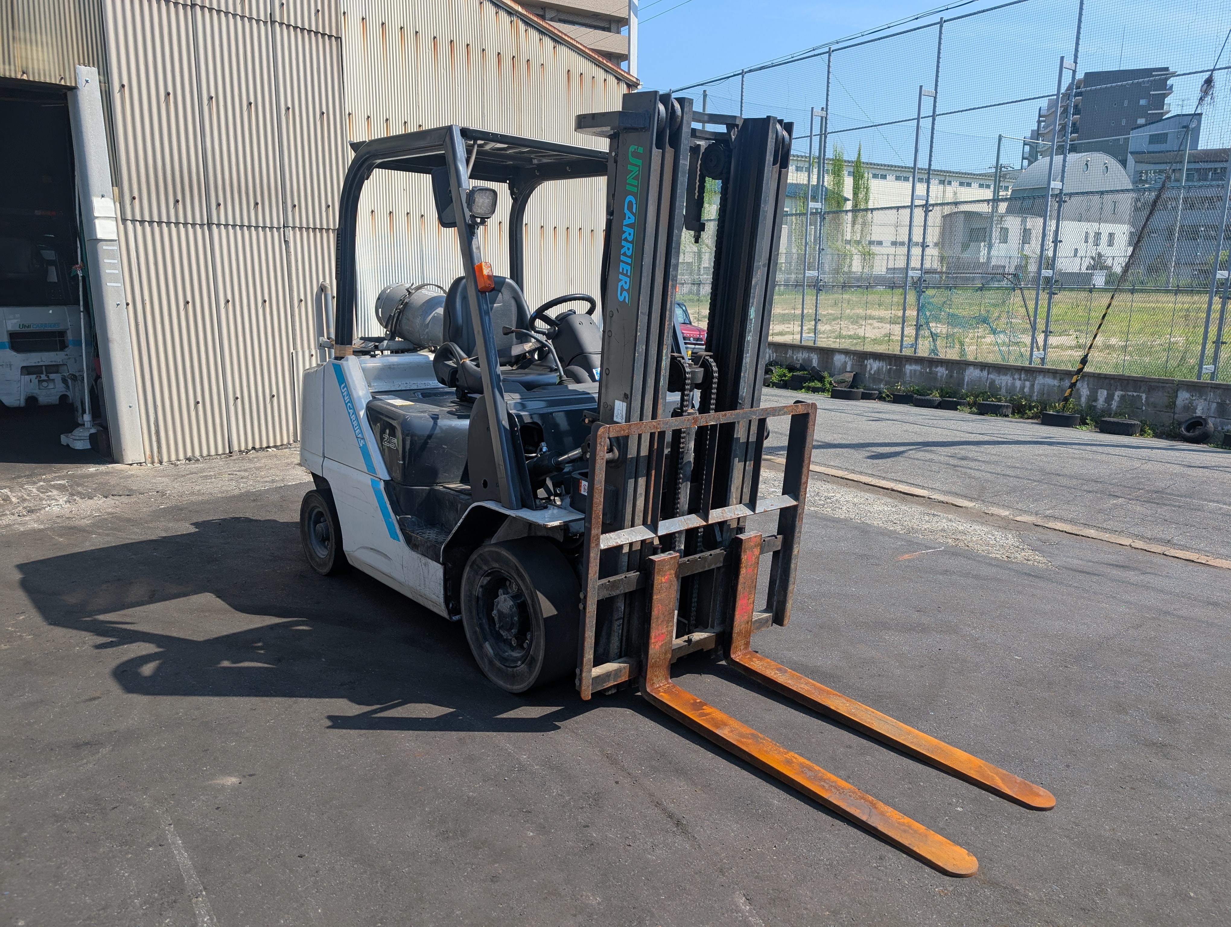 (現状格安販売) ユニキャリア ガソリン車 2.5ton 4.8mマスト FHGE25T5 1本レバー フルフリー LPG フォークリフトUsed Forklift